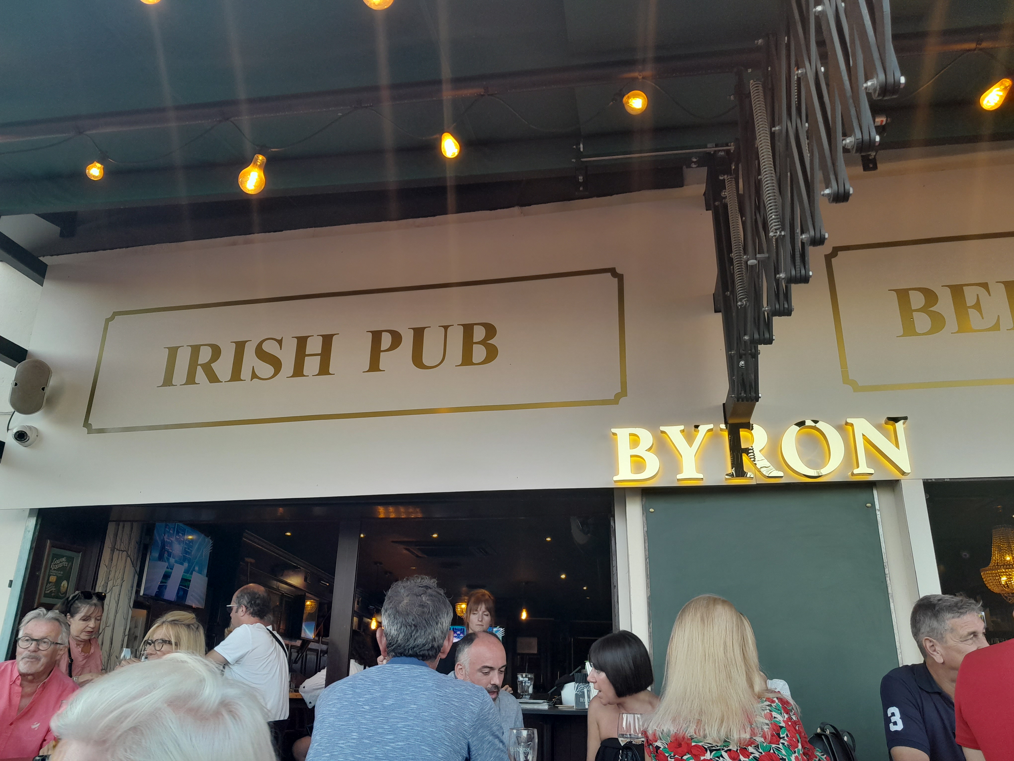 Posté le 10/02/2023 à 22:58"Pub à ambiance avec DJ, disposant d’une belle terrasse idéalement exposée. Équipe sympathique et efficace. Nous avons bu quelques cocktails et dégusté une très belle planche Byron avec beaucoup de bonnes choses ! Un régal entre amis. Je vous conseille aussi les Irish coffee pour les amateurs. Un peu plus d’alcool serait néanmoins bienvenu dans certains cocktails pour assurer la satisfaction client."