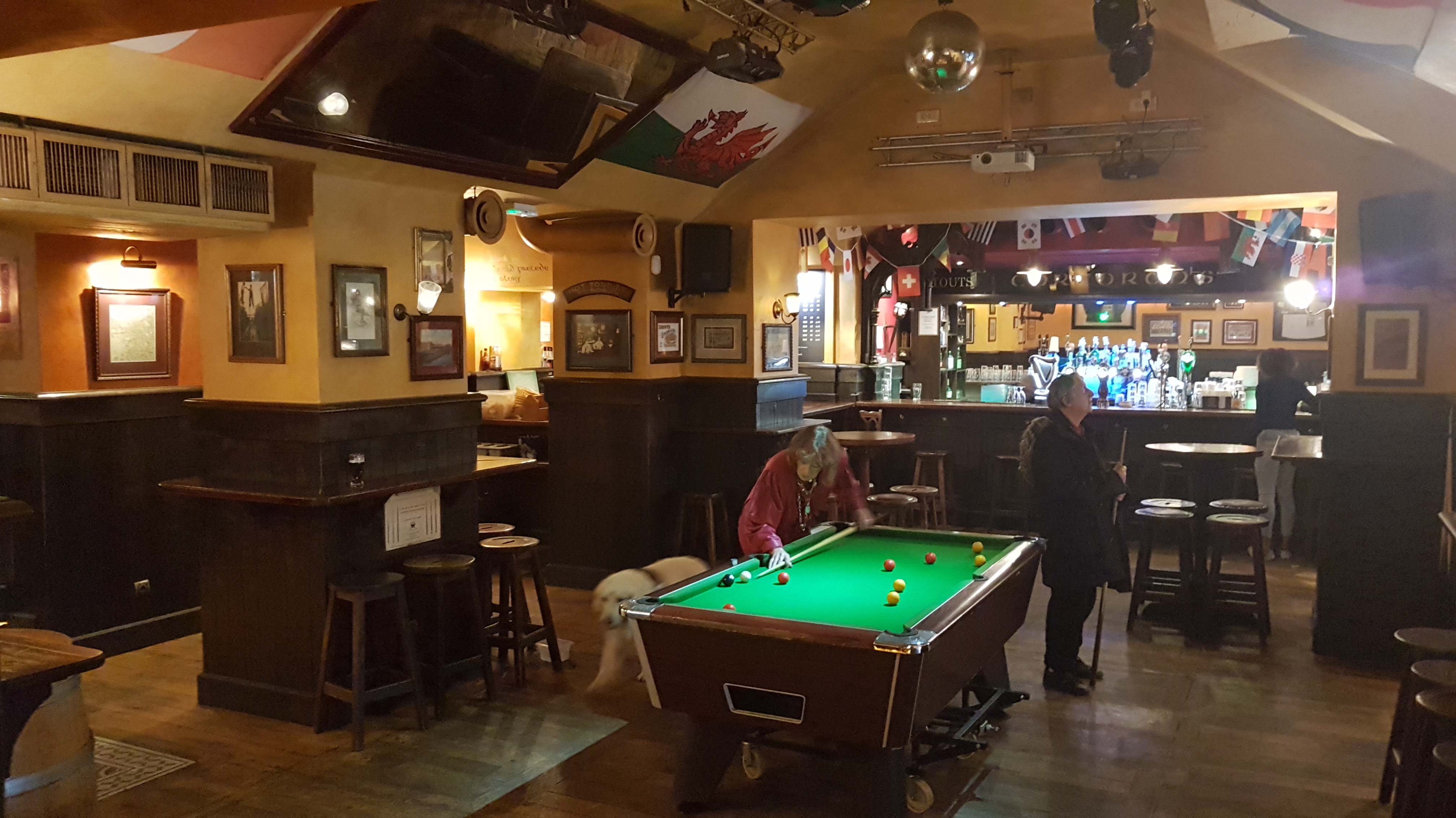 "L'ambiance est sympa et la taille du bar permet de se retrouver facilement avec toute sa bande d'amis. Ils proposent une carte de boissons assez étoffée et les pintes ne sont pas trop chères. Enfin, le pub proposent quelques billard et une diffusion des principaux évènements sportifs sur écran géant."