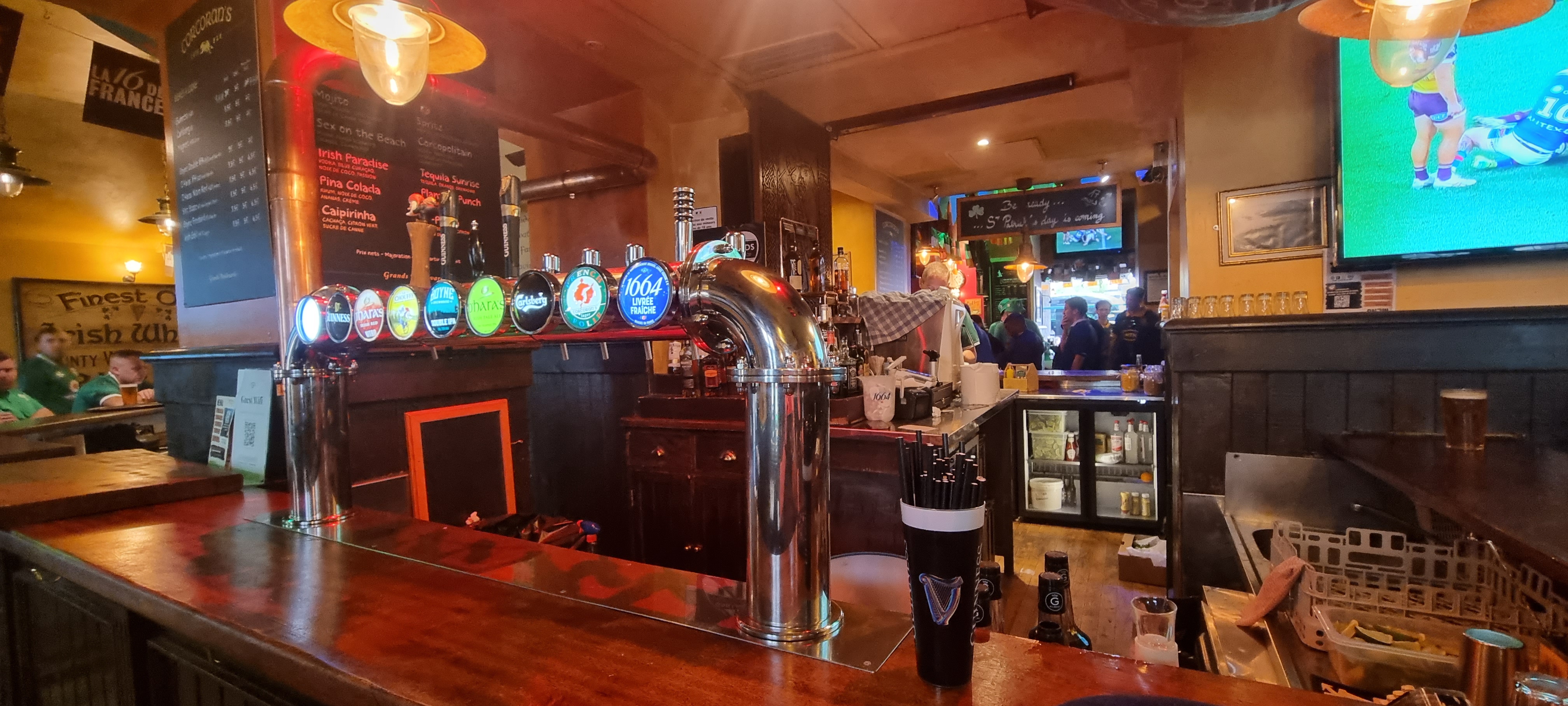Posté le 01/03/2018 à 12:41"Endroit parfait pour regarder un match et supporter son club. Les prix et les plats sont corrects. Bref un bon pub irlandais Pour boire sa Guiness ;)"