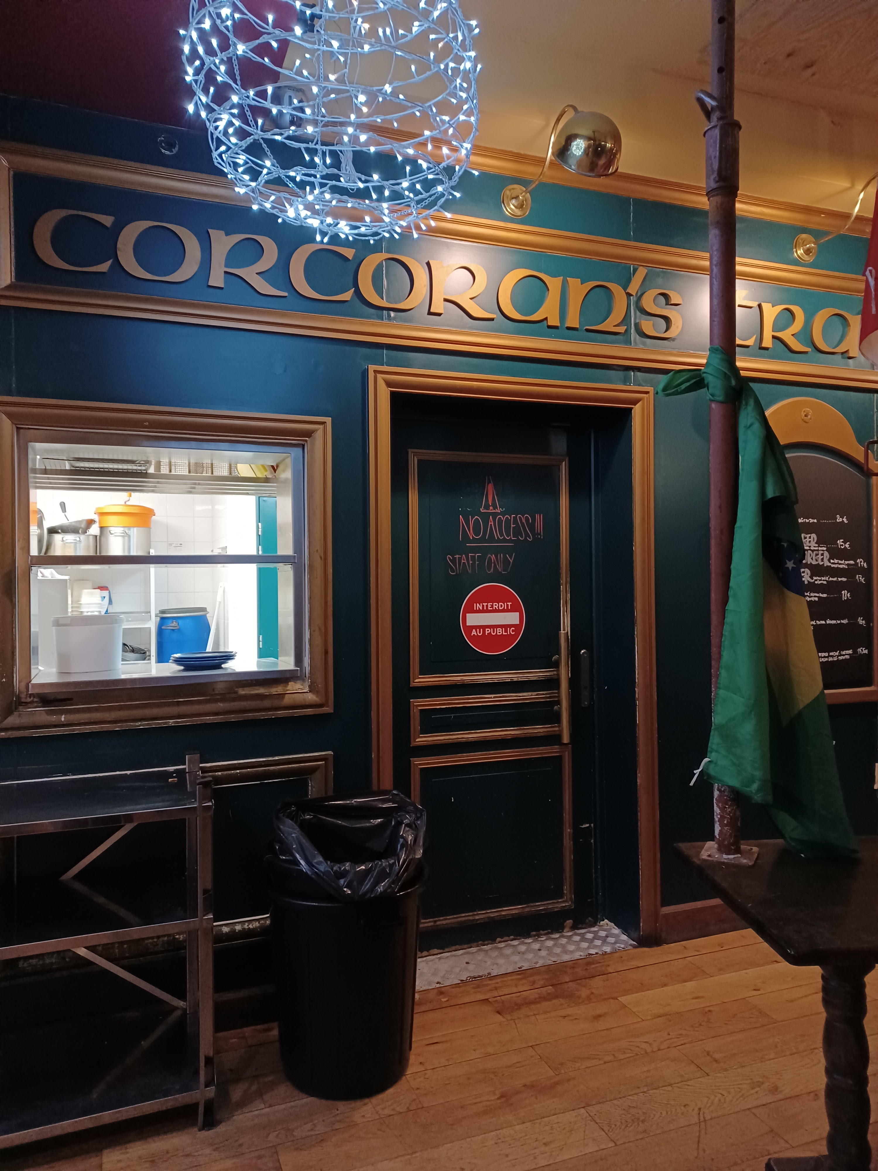 "Étant habitué du corcorans porte des lilas, je m'y rendais régulièrement pour déguster une bière irlandaise chère mais excellente. Depuis quelque temps et surtout depuis la dernière coupe du monde, le patron a eu la super idée de facturer l'entrée 10 euros pour pouvoir rentrer dans le bar.. je trouve ça lamentable, non seulement car les prix des consommations à l'intérieur sont exorbitantes et qu'il vous font payer l'entrée car 10 euros l'entrée avec une conso reviendrai a dire qu'on paye l'entrée environ 5 euros.. quand on demande des explications, on nous dit simplement que c'est pour éviter que les gens qui rentrent ne consomment pas.. argument bidon et odieux, toute les méthodes sont bonnes pour faire du fric sur le dos des gens. . Excusez moi, mais les gens qui acceptent de payer 10 euros l'entrée d'un bar sont tout bonnement de bon moutons et je rajouterai même que sans aucun prétexte vous devez agir ainsi. Que dites vous par exemple aux gens qui veulent manger ou boire un verre dans votre établissement ? C'est soirée foot donc c'est 10 euros l'entrée avec une consommation ? Vous les inviter a revenir un autre jour si ils refusent ? Méthodes scandaleuses. A boycotter d'urgence, je n'y remettrait jamais les pieds."