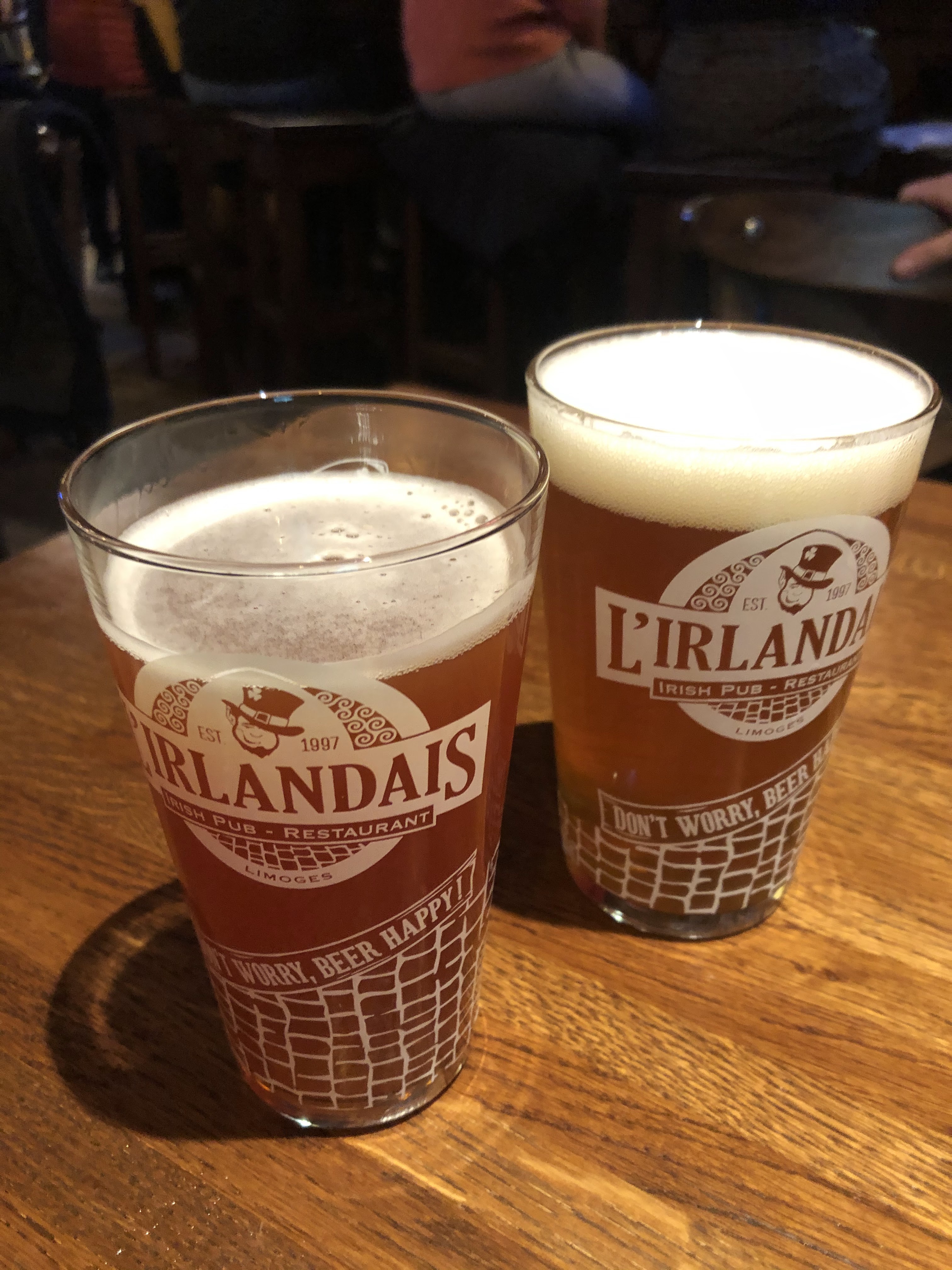 14 juillet, 20h, 33°, l'irlandais est plein... 😁 à craquer Le serveur s'est donner la peine de nous trouver une table... 🥳 Ce fut parfait, le tartare 350g est excellent, les desserts à tomber. Les serveurs supers serviables et rapides. On s'est RÉGALÉ 🍺 super pub bistronomique.. je recommande vivement. La carte des boissons est bien complète. Une superbe bière du moment à la passion et à la fraise Moment génial dans un cadre idyllique au cœur du vieux Limoges