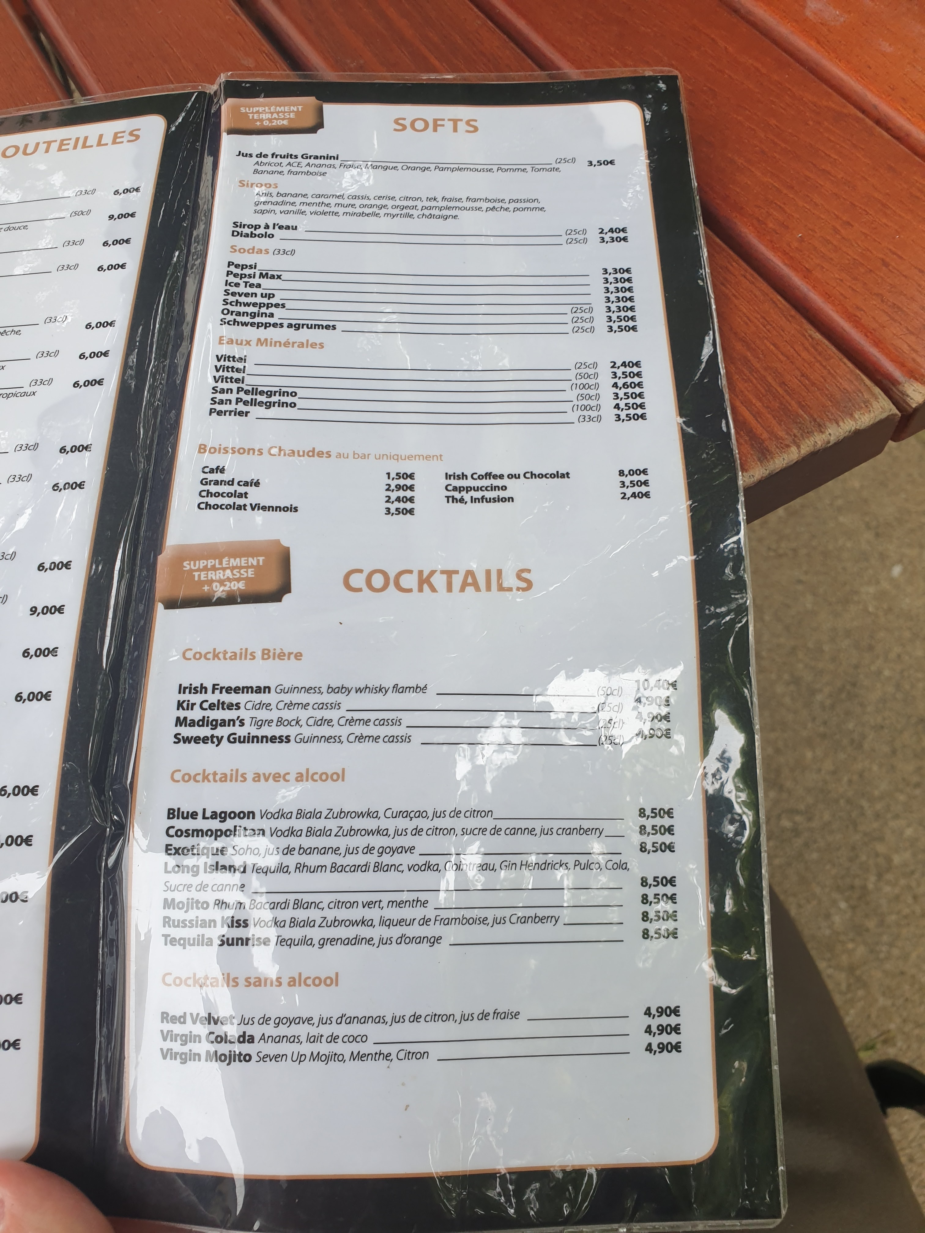 Un jour vous payez une limonade en 50cl à un prix correct bien qu'un peu cher, la fois d'après pour la même chose le prix a changé, 7 euros et quelques pour un verre de limonade.. Le prix change selon la personne qui vous sert, visiblement ils ne connaissent pas tous leur carte.