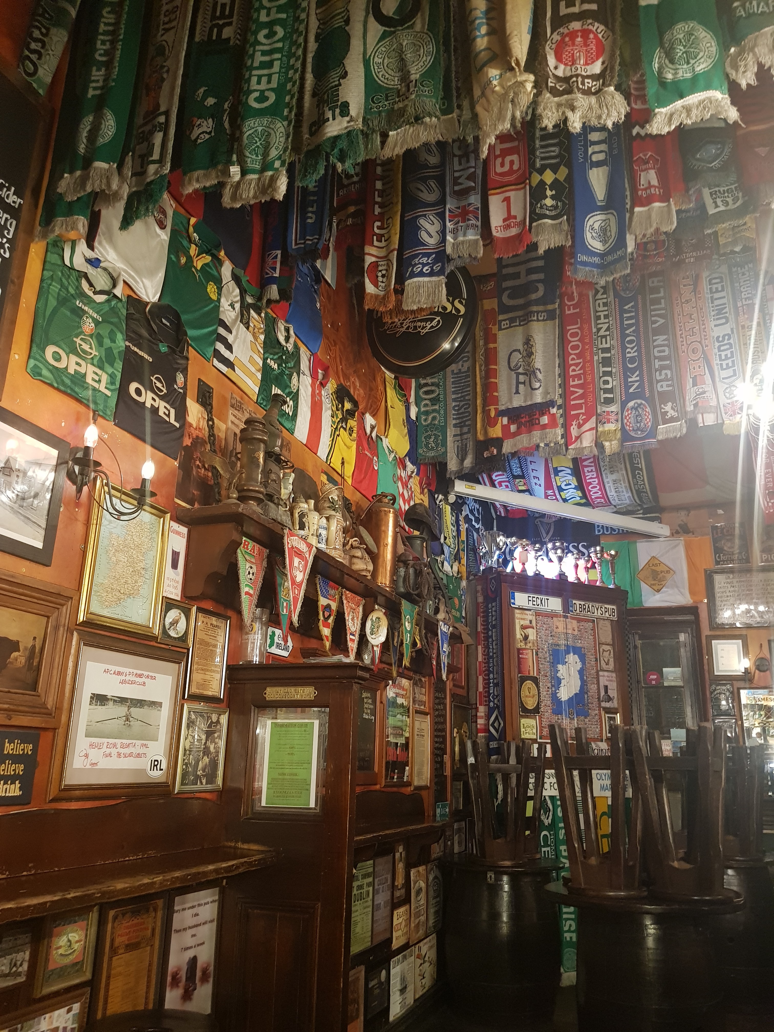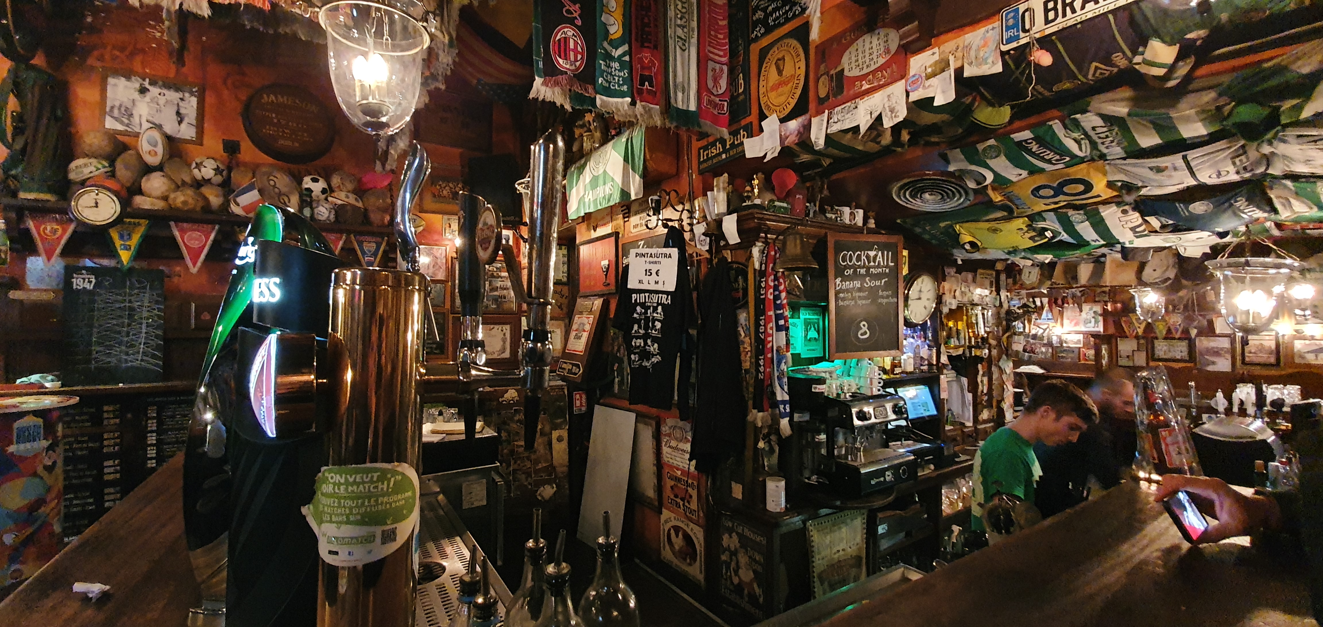 Je ne connais que peu mais l'intérieur du pub nous transporte en Irlande, on s'y croirait. On sent les années de collections de drapeaux, coupes, t-shirts, ballons, photos... Du sol au plafond et tous les murs ça fleure bon l'irish pub... Merci pour ce voyage.. Je n'ai pas vu la carte je ne vais pas commenter ce sujet..