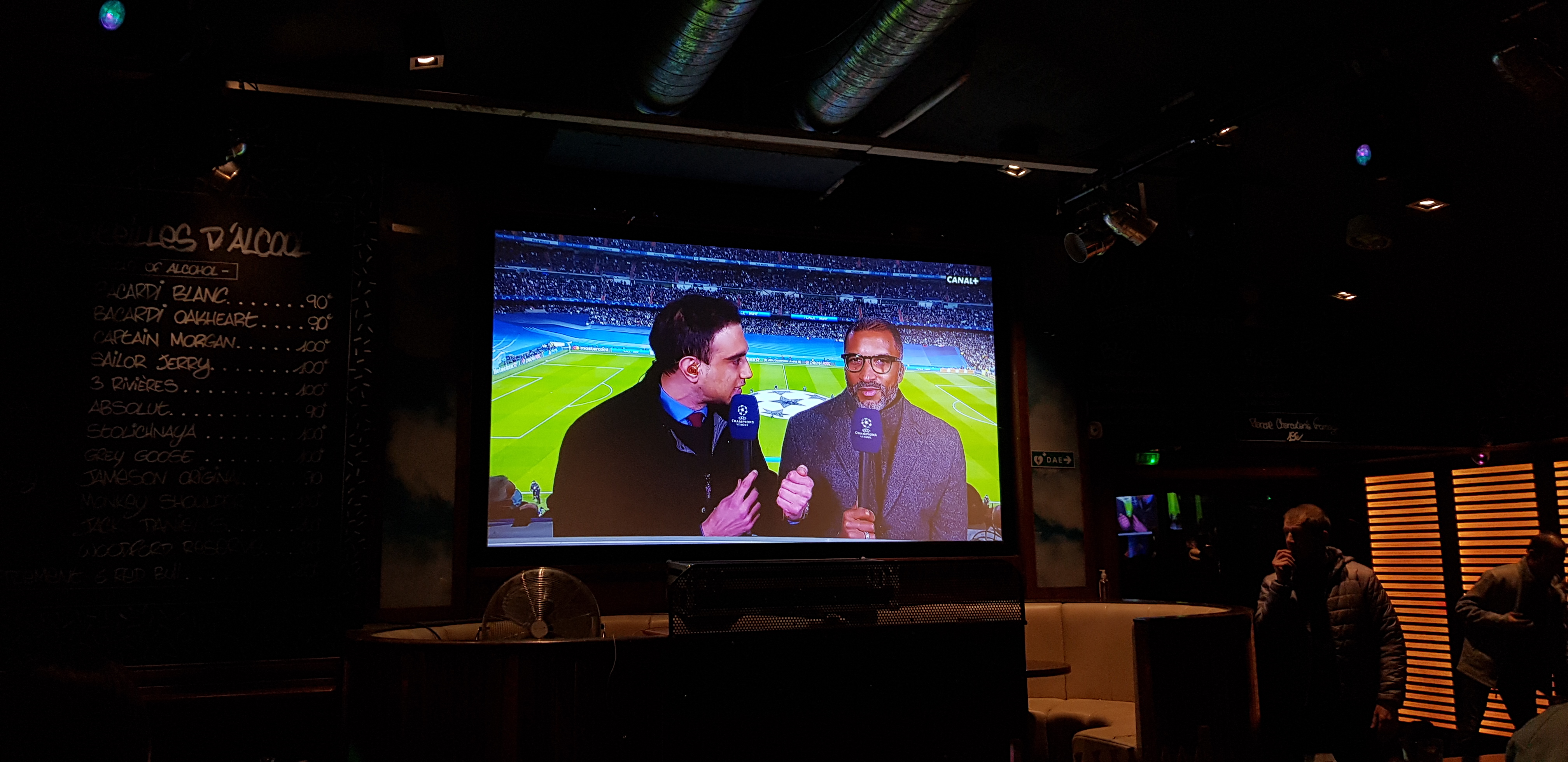 bon ambiance pour regarder la ligue des champions . grand écran avec teleprojection de qualité . pas vraiment le charme d un pub , mais bon bar musical aussi très bien placé . heureuse découverte !